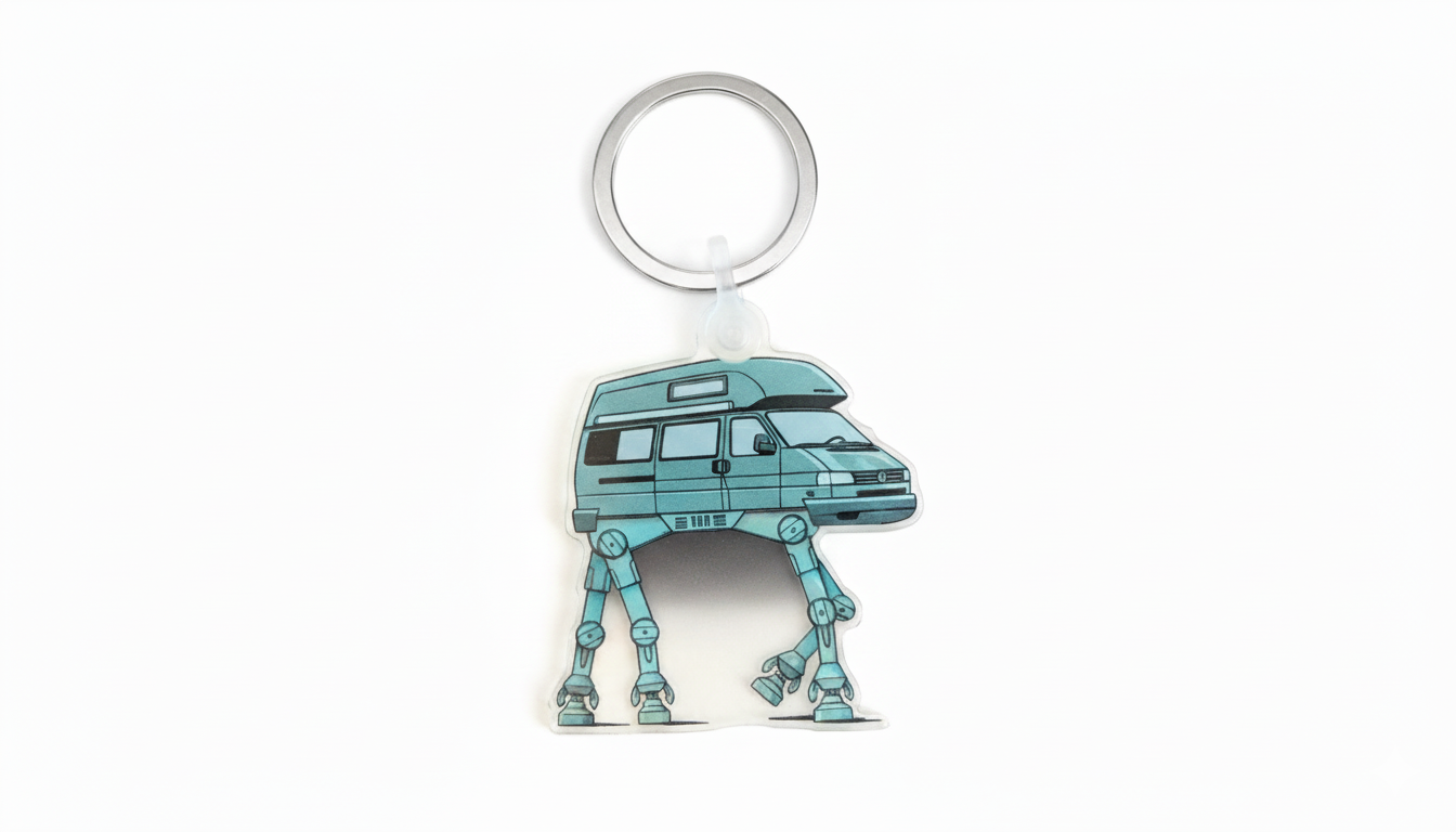 ✦ Diseño único que fusiona la icónica furgoneta VW T4 California Exclusive con el mítico caminante AT-AT. ✦ Fabricado en metacrilato resistente y ligero. ✦ Perfecto como regalo para amantes de las furgonetas Volkswagen y los fans de Star Wars. ✦ Un accesorio divertido y exclusivo para llevar siempre contigo.