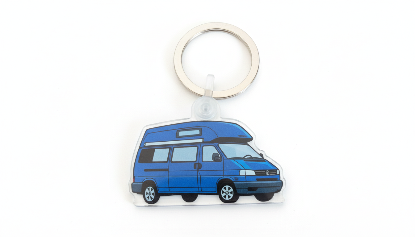 Si eres un apasionado del mundo camper o tienes una VW T4 California Exclusive, este llavero es el complemento imprescindible para llevar siempre contigo tu pasión.